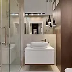 Profitez du confort d'une salle de bain dans Forest Rivus Apartment With Parking By Lion Apartments, équipée d'un sèche-cheveux. Une toilette séparée et une douche sont également disponibles.